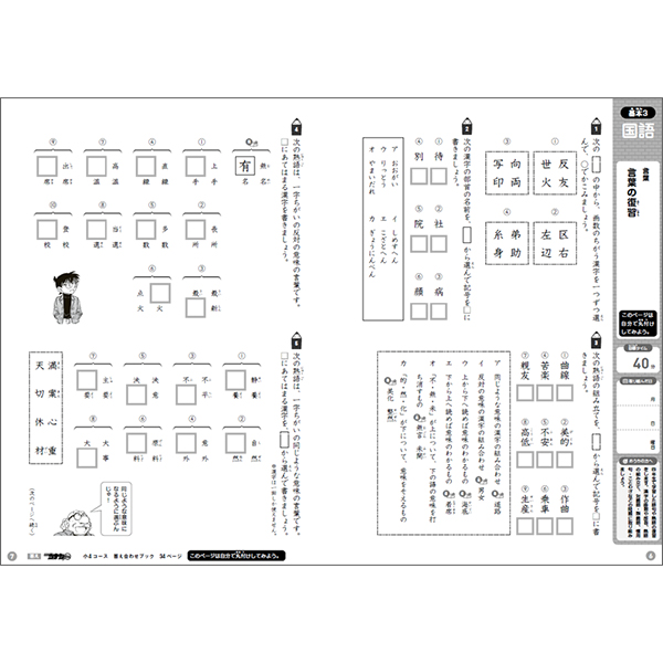 挑戦2:国語マスター② 四字熟語のクロスワード/ 同じ部首の漢字