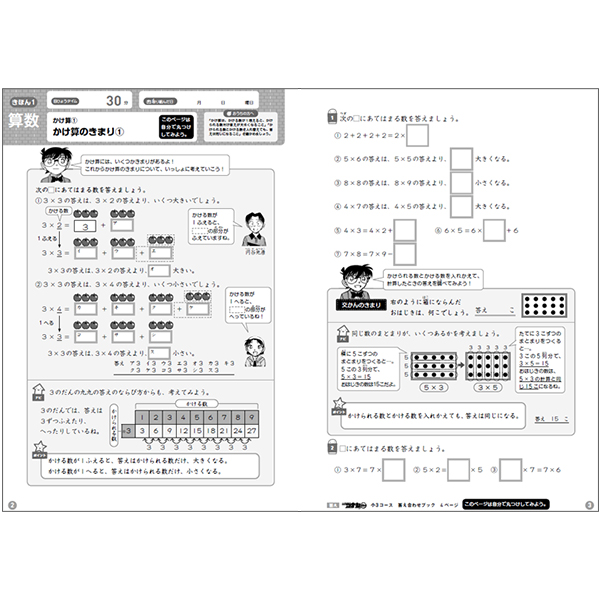 きほん9:かけ算/時こくと時間 かけ算と時こくと時間の練習